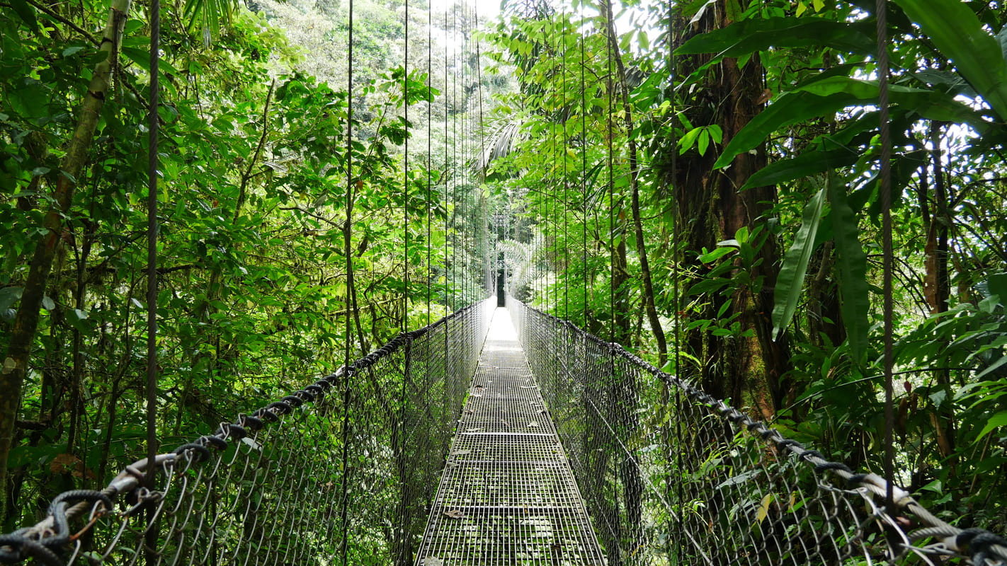Aujourd’hui, changement d’ambiance : direction les hauteurs brumeuses de Monteverde. Le trajet, ponctué de paysages spectaculaires, vous emmène à travers une route sinueuse où la végétation se fait de plus en plus dense.